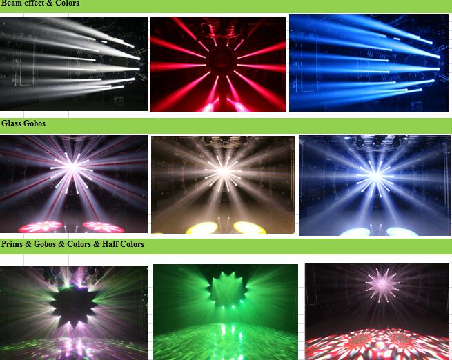 •Static Gobo Wheel:Water wave effect (Covering half size) ,8 gobos + open (Covering another half size)